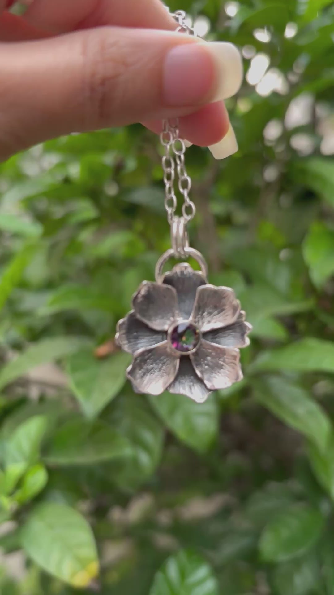 Handcrafted from exquisite sterling silver, this pendant features a delicate flower design with intricate detailing that captures the essence of nature's beauty. At its heart, a captivating mystic topaz gemstone shimmers with vibrant hues, adding a touch of magic to the piece. Perfect for any occasion, this pendant combines timeless sophistication with a hint of enchantment. Wear it as a statement of grace and allure, or as a cherished gift for someone special.