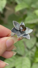 Handcrafted Floral Ring with Smokey Quartz as the centre stone.